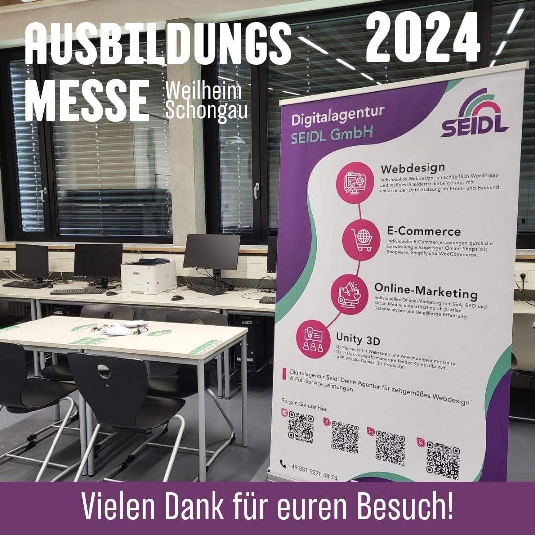 Die Ausbildungsmesse Weilheim-Schongau 2024 liegt hinter uns und wir sind begeistert von den vielen interessanten Gesprächen und Kontakten, die wir knüpfen konnten! 🙌 Es war uns eine Freude, die Berufe Fachinformatiker Anwendungsentwicklung, Kaufmann für E-Commerce und Mediengestalter näher zu erklären und unsere Leidenschaft für diese spannenden Tätigkeitsfelder mit euch zu teilen. 💻🎨💼